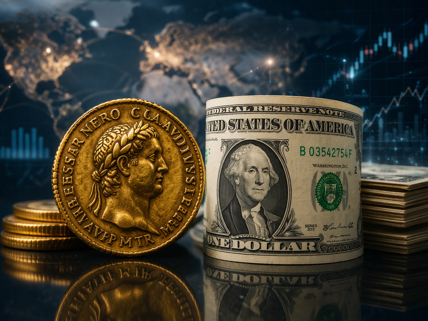 Barry Eichengreen identifie toutefois une cause plus immédiate du déclin : la dépréciation monétaire. Néron dévalua la monnaie après le grand incendie de Rome en 64 apr. J.-C., afin de financer la reconstruction et ses ambitions extérieures. Les pièces romaines devinrent alors moins attractives. Si l’inflation resta contenue sous Néron, elle s’accéléra sous ses successeurs qui recoururent à la dépréciation pour financer leurs dépenses et consolider leur pouvoir.